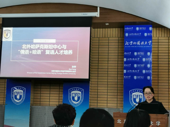 公司哈萨克斯坦研究中心主任孙芳副教授做了题为“北外哈萨克斯坦中心与‘俄语+中亚语’复语人才培养”的主题报告,介绍了公司哈萨克斯坦研究中心的建设情况及现有科研成绩,并就中心的未来发展规划与到会专家进行了交流