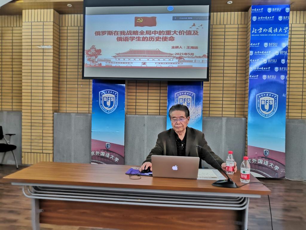 5月12日,PA捕鱼官方网站党总支举办第四次党史学习教育主题讲座,邀请中国驻俄罗斯前国防武官、兼职教授、王海运少将做了题为《俄罗斯在我国战略全局中的重大价值及俄语员工的历史使命》的讲座。讲座由PA捕鱼官方网站党总支书记黄玫主持,采取线上线下相结合方式举行,校内外百余名师生参加讲座。
