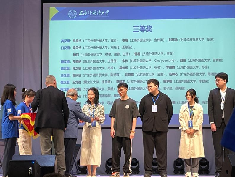 俄语决赛前6名:上外一等奖、三等奖(第1为哈萨克斯坦选手,第6为俄罗斯血统);北外二等奖、三等奖(第2第5);黑大,二等奖、三等奖(第3第4(均为俄罗斯血统);其他高校(广外、川外、北二外)选手获得优秀奖。